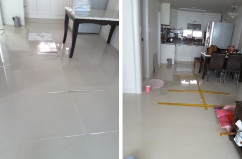 면목동빌라 ::: 거실 대리석타일 하자공사